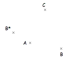 Spiegle das Dreieck ABC so, dass der Punkt B auf den Punkt B* abgebildet wird.