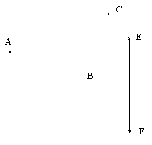 Verschiebe das Dreieck ABC entsprechend dem Verschiebungspfeil von E nach F.