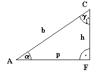Höhenfußpunkt F und der teilt die Hyspotenuse in die beiden