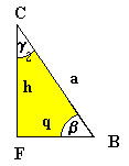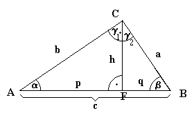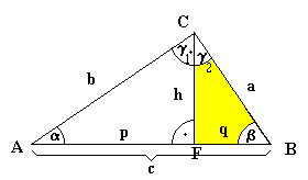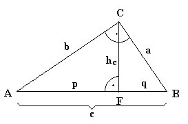 Höhenfußpunkt F und der teilt die Hyspotenuse in die beiden
