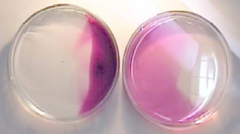 Die Abbildungen oben zeigen beispielhaft die Bewegungen von einzelnen Teilchen bei niedriger (links) und bei höherer (rechts) Temperatur im gleichen Zeitraum. |