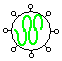 vom Phagen T2. Sein Aussehen ähnelt dem einer mikroskopisch kleinen