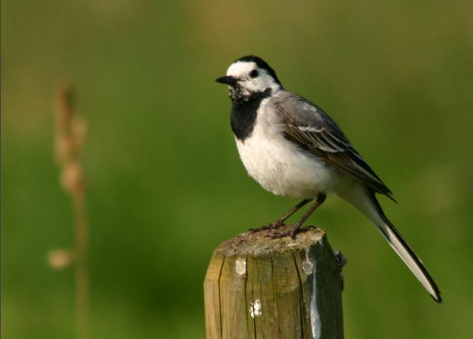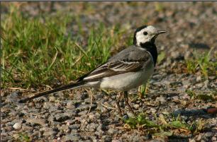konturlos in den grauen Rücken übergeht. Bachstelzen finden sich