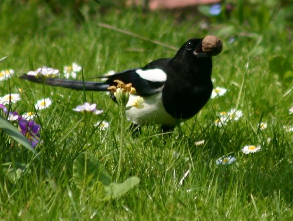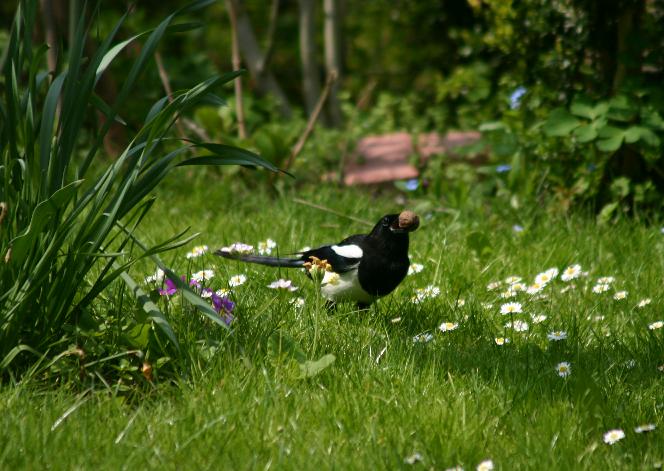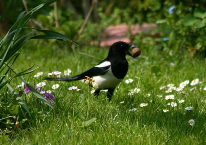 pflanzlich. Aas und Abfälle meidet die Elster nicht. |
