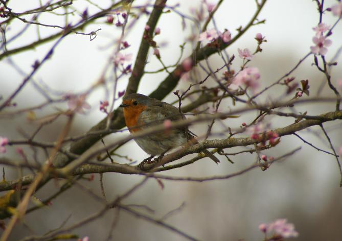 Das Rotkehlchen ist kleiner als der Haussperling.