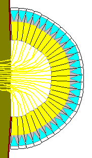 eines Insektenauges. Das Insektenauge ist aus vielen sich nach unten verjüngenden