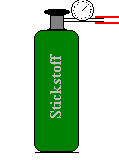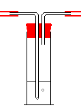 Wir geben etwas Kalkwasser in die drei Gaswaschflaschen und verbinden Sie entsprechend den Abbildungen mit den Stahlflaschen für Sauerstoff, Stickstoff und Kohlenstoffdioxid. Wir drehen die Armaturen leicht auf, so dass jeweils etwas Gas durch die Versuchsanordung strömt. a)