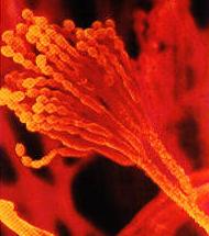 Unter dem Mikroskop kann man z.B. folgende Bilder von zwei verschiedenen Schimmelpilzarten finden.