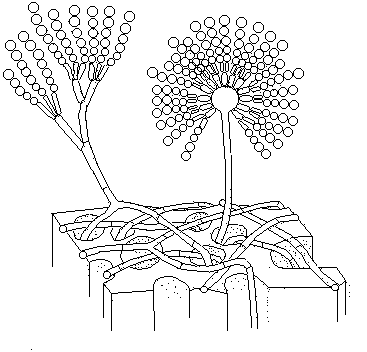 Betrachtet man ein verschimmeltes Brot unter dem Mikroskop, so kann man ein Bild wie das folgende zeichnen: