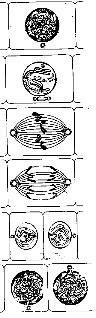Chromatingerüst wieder sichtbar. Verdoppelung der Erbinformation für die nächst Zellteilung und Kopien der Erbinformation zur Bildung der notwendigen Enzyme.