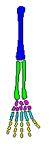 Unten siehst du nun im Vergleich die Grundbaupläne des Innenskeletts einer fünfstrahligen Wirbeltierextremität und des Außenskeletts eines Insekts