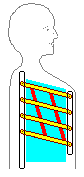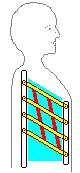 ![]() | Bei den beiden Abbildungen links und rechts ist rot die Zwischenrippenmuskulatur eingezeichnet. Sie verbindet die Rippen miteinander und verläuft dabei schräg. Links ist der ausgeatmeten Zustand, rechts der eingeatmete. Messe nun mit einem Lineal auf dem Bildschirm nach, in welchem Bild die Zwischenrippenmuskulatur verkürzt ist. (Falls das Messen auf dem Bildschirm Schwierigkeiten macht, kannst du dir auch ein Arbeitsblatt ausdrucken, auf dem du leichter nachmessen kannst.) | ![]() |