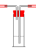 Material | Wasserstrahlpumpe Glasrohr, dick Stopfen mit Bohrung, 2 Gaswaschflasche Zigaretten, 1-3 | Glasröhrchen, gerade, 2 Gummischlauch, 3 - 4 Stücke Zellstoff (Watte) Streichholz, Feuerzeug |
