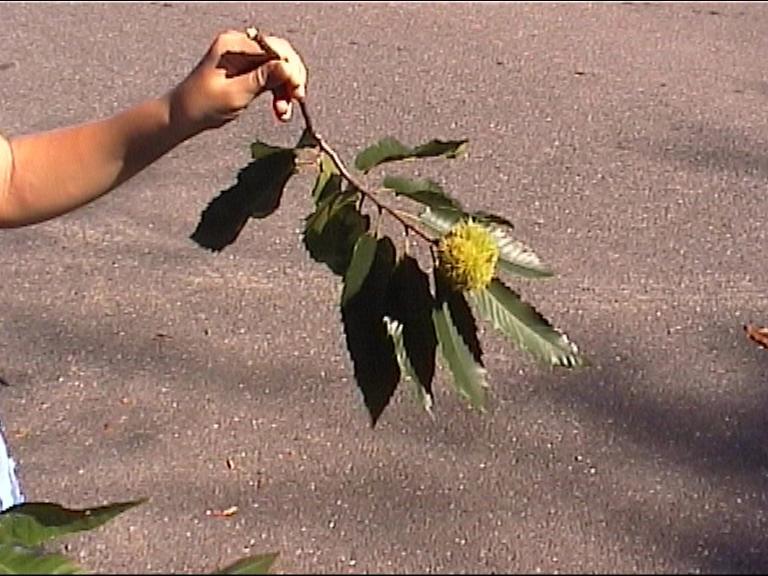 Die Essbaren Samen der Esskastanie, die Maronis, befinden sich in einer außen sehr stacheligen Fruchthülle, die beim Fallen in vier Klappen zerspringt. Die Samenschale ist sehr hart und muss beim Rösten der Maronis, die vor allem in der Weihnachtszeit sehr beliebt sind, etwas aufgeschlitzt werden, da sie sonst in der Hitze zerspringt. Im Vergleich zu der bekannteren Roßkastanienfrucht ist die Esskastanie platter und kleiner. In einer Samenhülle befinden sich meistens zwei bis vier Maronen. |