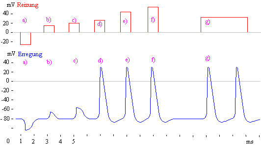 Du sollst Reizstärke und erfolgte Erregung analysieren und dann die gestellten Fragen beantworten. |