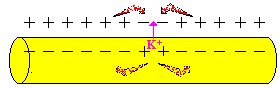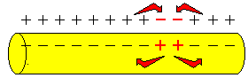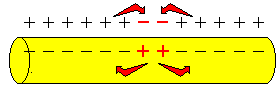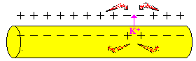 An der Stelle des Aktionspotenzials ist die Nervenfaser außen negativ und innen positiv geladen. Dadurch entstehen Ausgleichsströmchen, die auf die umgebenden Bereiche wirken und diese leicht depolarisieren. |