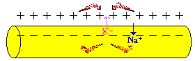 Wo Natrium-Ionen einströmen wird es außen negativ, innen positiv. Es entsteht ein Aktionspotenzial. |