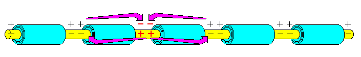 | Untern siehst du eine Momentaufnahme der Erregungsleitung an einer markhaltigen Nervenfaser bei Wirbeltieren. |