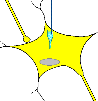 | Rechts ist die Versuchsanordnung zur Messung der Membranpotenziale