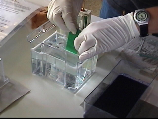 Gele werden geschüttelt 3) Das Archivieren der Gele wird aus Zeitgründen in der Regel von den Kurslehrern vorgenommen. (Der Arbeitsauftrag nur als Text)